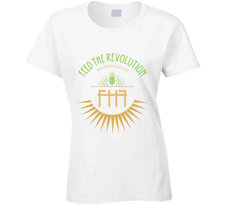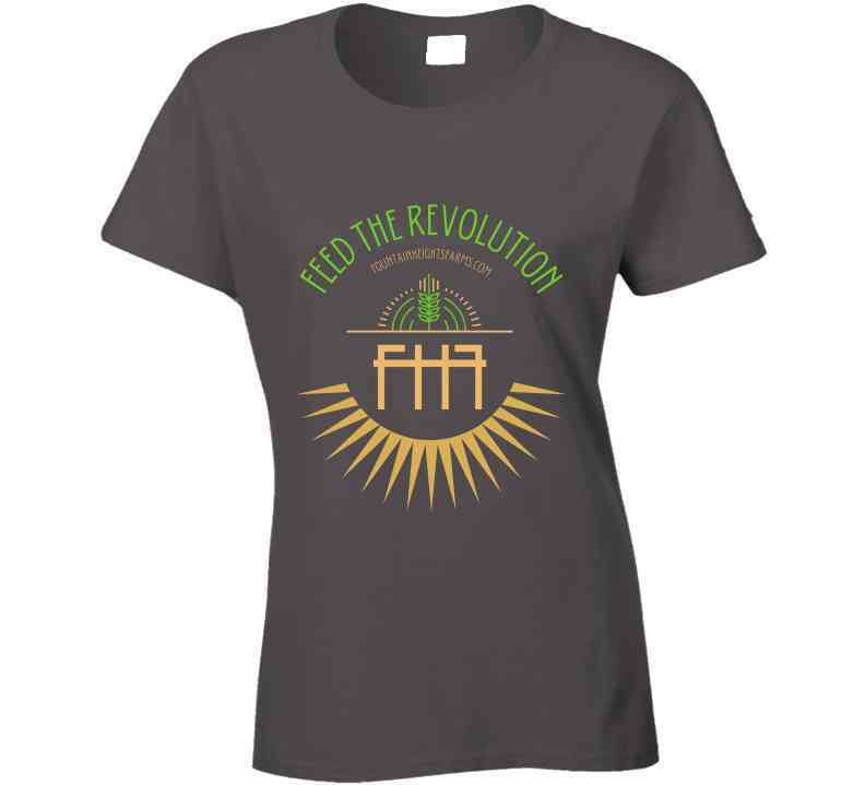 Represent with our original Fountain Heights Farms brand "FEED THE REVOLUTION" Fitted T-shirt. Our branded Fitted T-shirt prominently features our Fountain Heights Farms logo, our website address and our slogan "Feed the Revolution". With a nod to the neighborhood's 1920's art deco historic vibe and the energy of an amazing future to come it's an amazing t-shirt to own and benefits our Urban Community Farm. Available in a variety of colors including black, white, and grey.