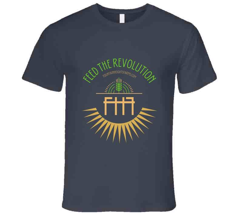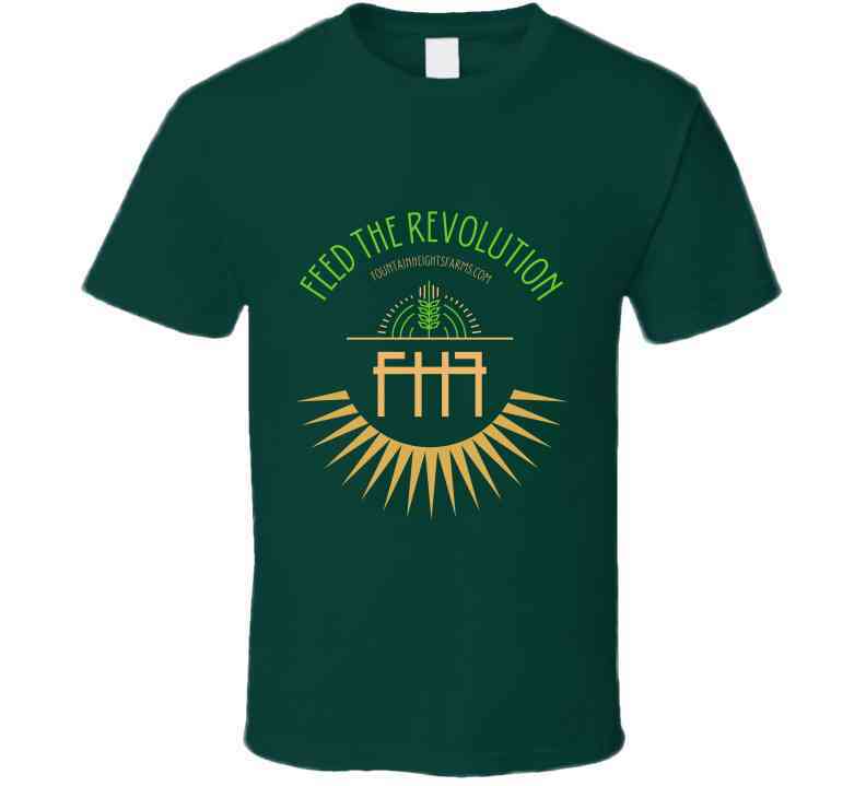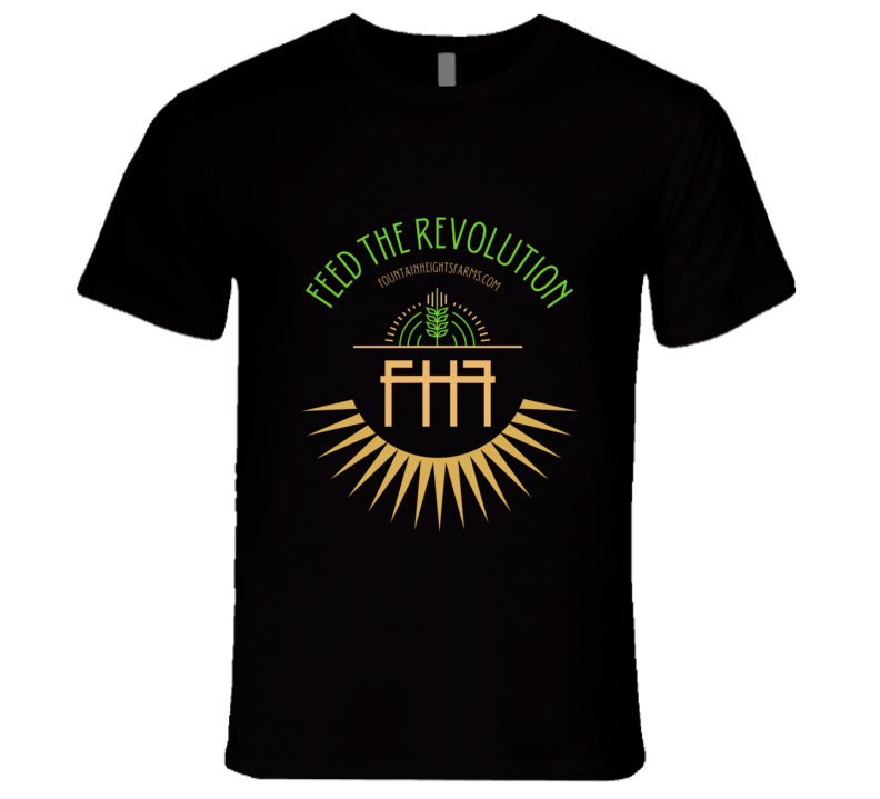 Represent with our original Fountain Heights Farms brand "FEED THE REVOLUTION" Classic Cut T-shirt. Our branded Classic Cut T-shirt prominently features our Fountain Heights Farms logo, our website address, and our slogan "Feed the Revolution". With a nod to the neighborhood's 1920's art deco historic vibe and the energy of an amazing future to come it's an amazing t-shirt to own and benefits our Urban Community Farm. Available in a variety of colors including black, white, grey, and forest green.